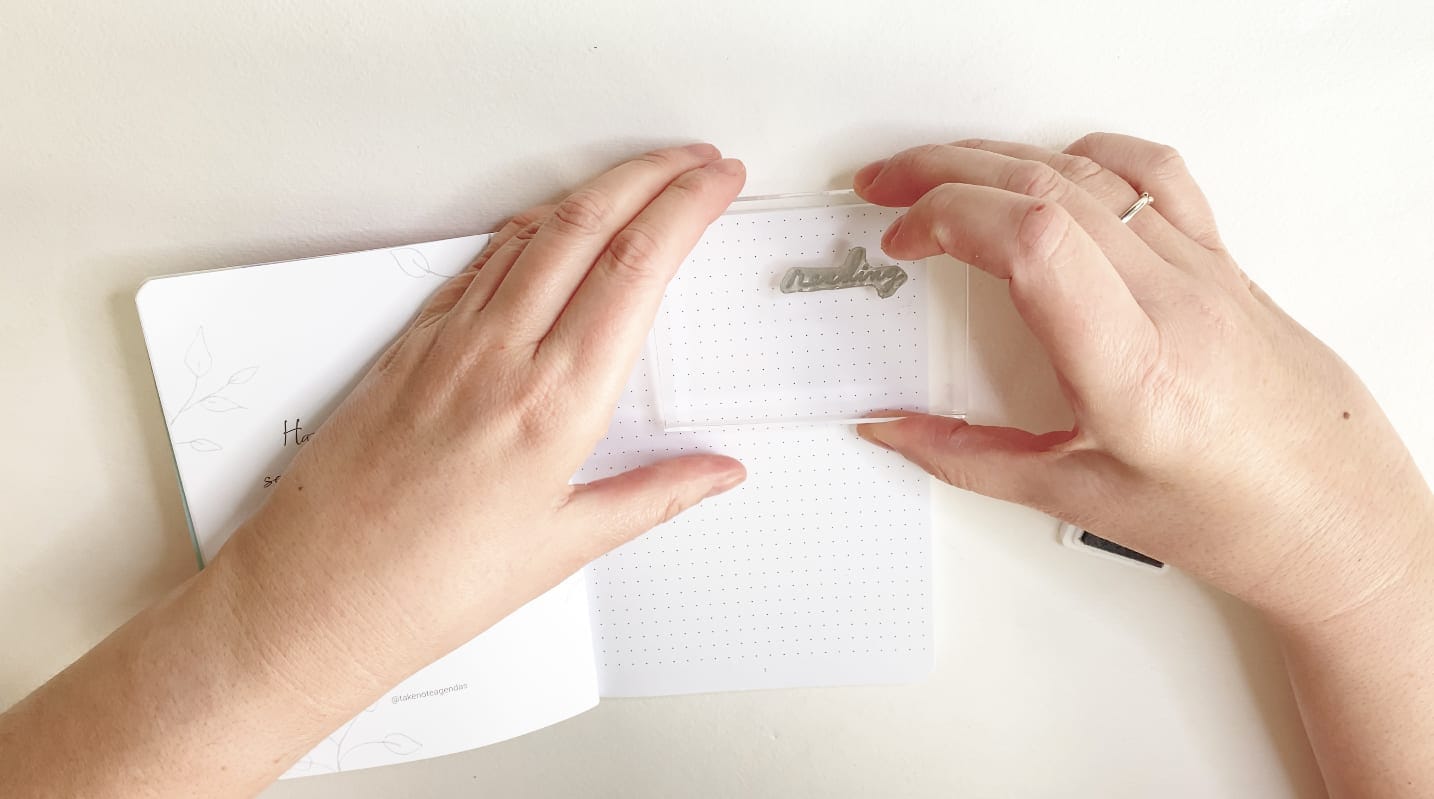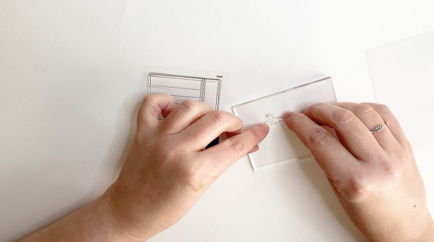 Hold the acrylic block with both hands in the position shown, and once you have placed the stamp where you want it, press down firmly to stamp it.